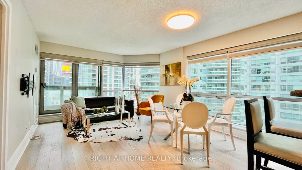 Welcome To The Residences Of The World Trade Centre: Recently Renovated Elegant 1 Bedroom Open Concept Corner Unit. Floor To Ceiling Windows, Large Balcony. Parking. Indoor And Outdoor Pools. Whirlpool, Sauna, Squash, Gym, Movie Theatre, Dance Studio, Guest Suites, Party Room, 38th Floor Sky Lounge. Lakefront – boardwalk, Financial District, Island Ferry At Doorstep. Sun & Light. Parking Included.