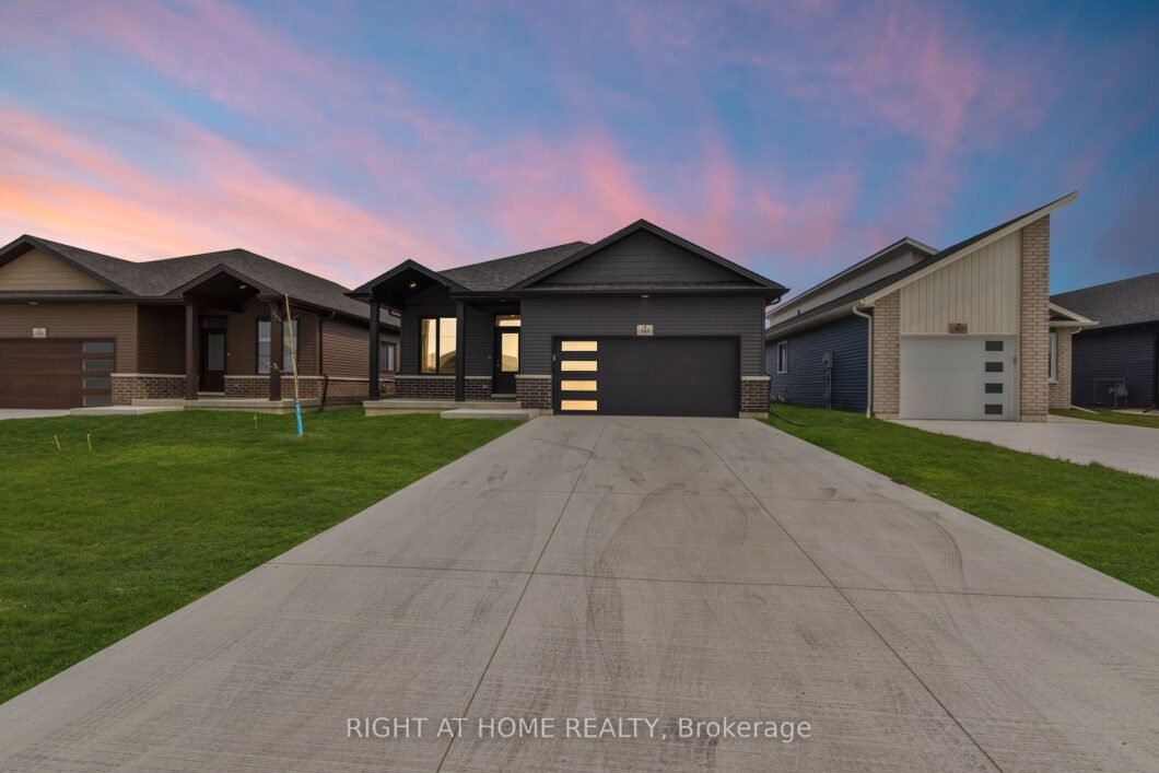 This recently constructed, contemporary bungalow is an excellent choice for first-home buyers, investors, and retirees. Situated in a rapidly developing neighbourhood just minutes from the 401, this beautifully designed model offers direct access to the house from the spacious double-car garage, as well as from the main floor with laundry/mud room access. The property features a tastefully designed kitchen, an open-concept dining area, and a great room overlooking the backyard. With three bedrooms, two baths, and covered patios at both the front and rear, this home is perfect for outdoor relaxation.