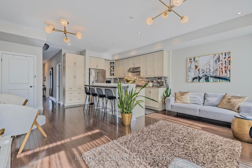 Amazing 2500 sq ft of finished space! Exquisite luxury townhouse with a finished walkout basement backing onto a lush ravine! TWO kitchens, TWO primary bedrooms with en-suites & walk-in closets. TWO separate Laundries, TWO Large south facing terraces. A total of 5 Bdrm & 5 Wshr. Main floor ideal for entertainment or family gatherings: open-concept, natural light filled with 10′ smooth ceilings, stunning eat-in kitchen with quartz countertop & large island, a custom additional cabinet for extra storage, walk-out to a spacious deck large enough for gazebo & equipped with gas line for a BBQ. Hardwood flooring throughout and 9′ ceilings on other floors. Spacious 2nd floor Prime Bdrm with spa-like ensuite serene view. Beautiful open-concept loft with a large terrace & scenic view equipped with its own 3pc Wshr and walk-in closet. And finished basement fully functional as a separate unit with a kitchen, bedroom, full bath and laundry with its own entrance. Playground, mini golf, plenty of visitors parking on site. Prime location: across the Yummy market Plaza with groceries, coffee shops, restaurants, day care. Steps from LCBO, banks, YRT, Eagle Nest Golf Club, new community center, Lebovic Campus, trails. Easy access to HWY 400 & 404 and three GO stations. Zoned for Anne Frank P.S. & St.Theresa H.S. A must see!
