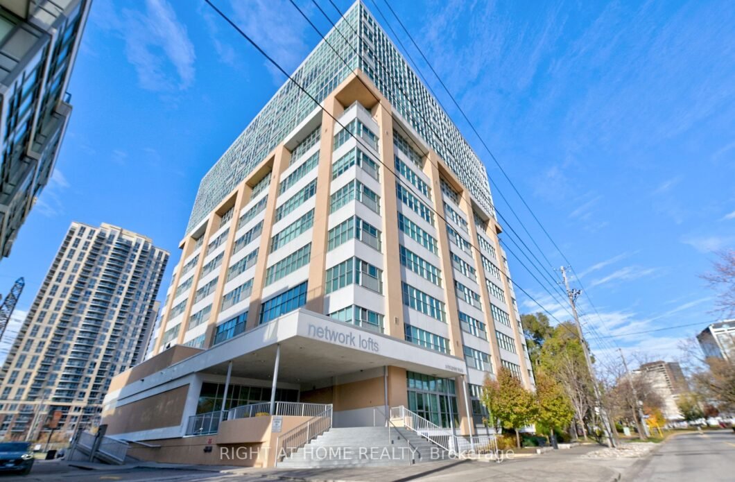 Welcome Home! Impeccably kept 1 bedroom Loft in the highly sought-after Network Lofts. Upgrades galore including chef’s kitchen with stainless steel appliances, hardwood throughout, high lofty ceilings, barn door to spacious bedroom with wall-to-wall closet full of organized shelving. Convenient 6-minute Walk To Islington Subway. Includes locker and parking