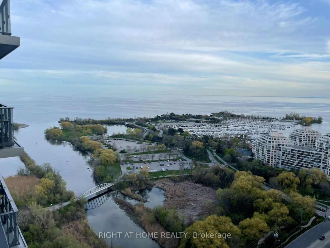 Abundance of natural light from floor to ceiling windows throughout this 2 bedroom 2 bath corner unit with split bedrooms; wake up to gorgeous views of the lake and marina; bike or stroll along the waterfront trails and parks; easy access to city core by TTC, GO or car on QEW; 24/7 concierge and amazing club w amenities include roof top terrace with BBQs, pool, theatre, party rooms, squash courts, yoga, games room, kids play room and more.