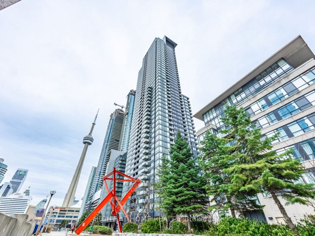 Bright & Spacious One Bedroom Suite (Approx 575 sqft) With Large Floor to Ceiling windows in City Place. Unobstructed north view with Natural Bright Light. Functional Open Concept Floor Plan: Modern Kitchen With Granite Counter & Frosted Glass Cupboards; Modern Spa Like Bathroom; Large Living Room, Walk-Out To A Large Balcony; Wide Plank- Laminate Engineered Floors; Custom Roller Blinds; Lots of Storage and Locker Included; Steps To T.T.C., PATH, The Well, Waterfront, Cn Tower, Rogers Centre, Financial District, Entertainment District, Metro Convention Centre, Shopping, Restaurants & More