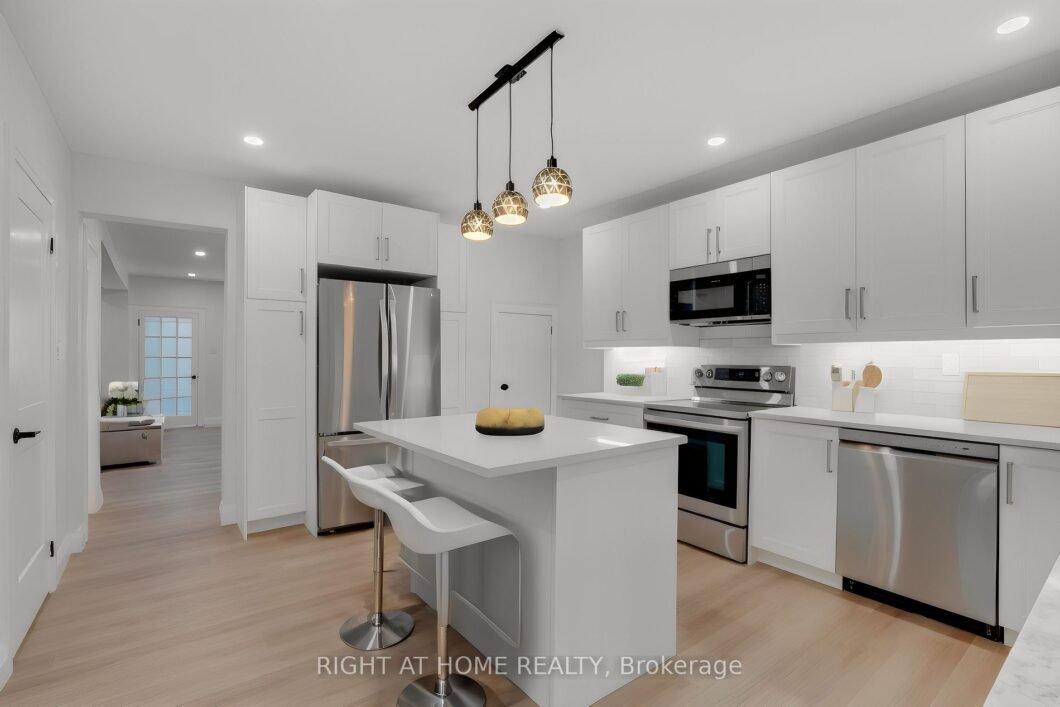 Old-world charm meets modern comfort in this beautifully renovated property-a cottage in the city, located in desirable South-Central Burlington! Relax on the private, covered back porch and gaze at the majestic trees, or take a 2-minute walk with your coffee to sit on a Muskoka chair at the shore. Unwind or entertain in the sunny living and dining room, complete with a stylish gas fireplace, and even a hidden servery for your favourite wines. So many potential uses for this main floor den-office, library, music room, or playroom! Enjoy the modern kitchen with endless storage, all brand new appliances, desk nook, and convenient main floor laundry. The whole home is completely updated for modern living and efficiency, it features a new EV charger, Nest thermostat, and heat pump. Original touches were maintained like some of the beautiful oak floor planks, and original fireplace stove, as decor. The second level offers 3 spacious bedrooms, 2 full baths, and a quiet office.