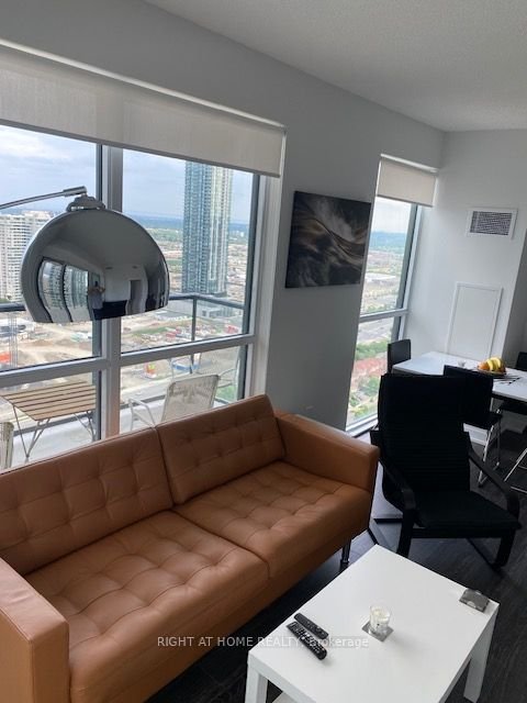 fully Furnished (STUDENT ARE WELCOME)*Brand New** + 9 Feet Ceilings, Unit Features A Massive Outdoor L-Shaped Balcony, Spacious Open Concept W/ Laminate Flooring Throughout Living/Dining. Open Concept Den Overlooking Large Kitchen W/ Stainless Steel Appliances, Breakfast Bar, Granite Countertops & Upgraded Full Glass Cabinets. Just Steps Away From Square One, Library, Ymca, City Hall, Living Arts Center, Sheridan College & More.
