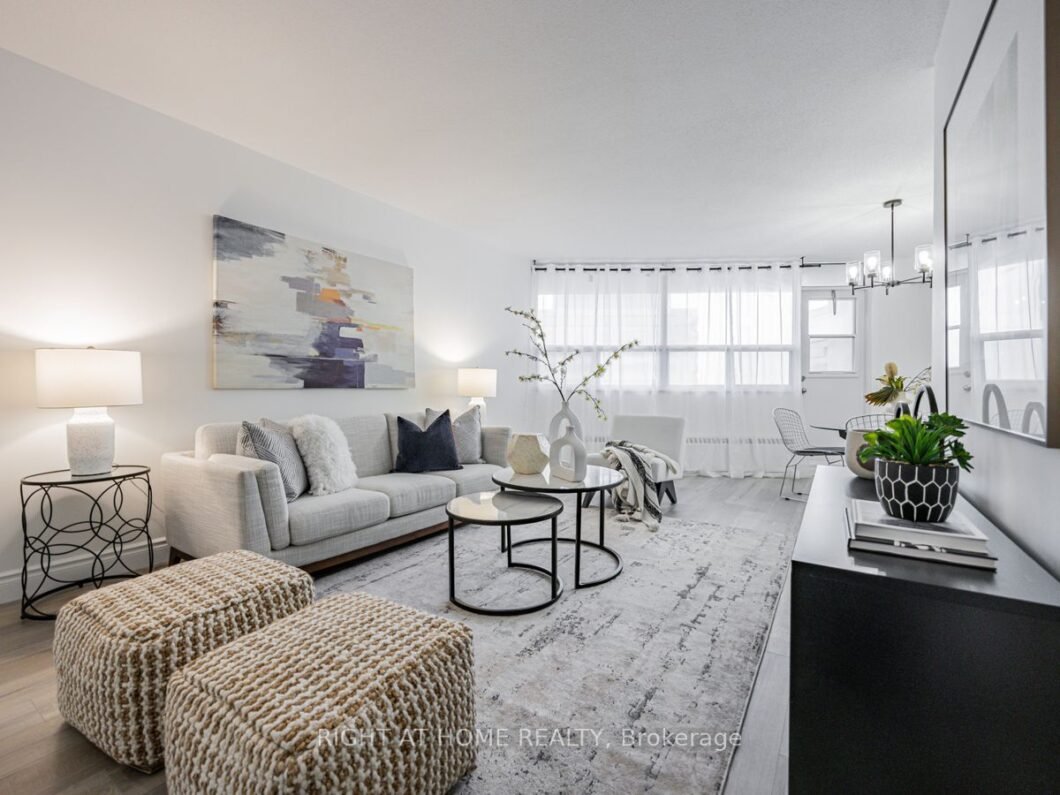 Experience luxury in this fully renovated, 3-bed, 2-bath haven. Enjoy a brand-new ensuite laundry and a dazzling white kitchen equipped with stainless steel appliances, quartz counters, tiled backsplash and updated pantry for added storage. The living and dining room, bathed in natural light, opens to a spacious balcony perfect for dining and lounging. The master bedroom boasts a beautifully renovated 3-piece ensuite with marble tile, oak vanity, and a walk-in closet. 2 other large bedrooms with closets and a fresh 4-piece bathroom complete the layout. Storage abounds with a linen closet, coat closet, and additional closet space in the living room. Ideally located near highways, the subway, shopping, restaurants, and parks, convenience is at your doorstep. Enjoy a range of amenities: tennis court, outdoor pool, playground, sauna, and exercise room. This is your chance to own a sophisticated blend of comfort and accessibility in a vibrant community. Your dream home awaits!