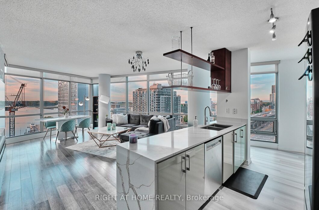 Gorgeous Water Views In This South West 2 + 1 Bedroom Corner Unit !! Beautiful Large Family Sized Suit (Apprx. 1268 Sqft). Den Can Be Used As A 3rd Bedroom/Home Office) Amazing Value & Extremely Spacious. Most Prized Layout Which Is Rarely Available In This Building. Amazing Location. 30,000Sq.Ft Dedicated Amenities Building Including: Gym, Swimming Pools, Sauna, Hot Tub, Party Room, Lounge, Basketball/Volleyball Court, Outdoor Bbq Pits, Bowling Alley.