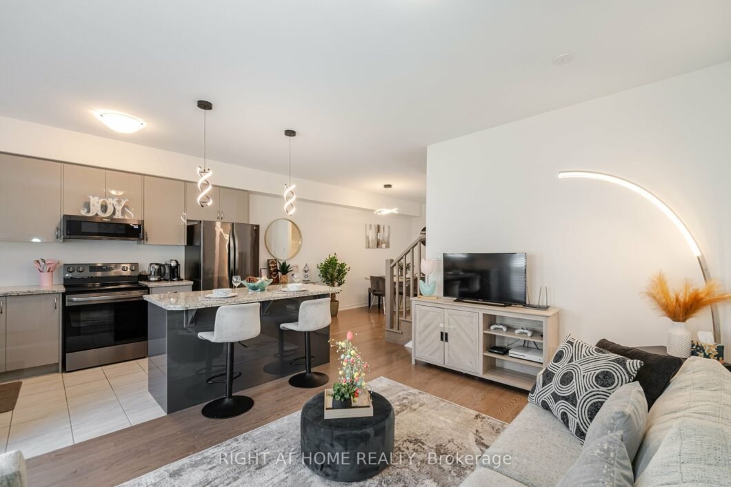 Exceptional Modern 3 Bedroom Freehold Townhome In Prestigious Ancaster neighborhood area! 1,583 sqft (The “Elm”). Well Appointed W/High-End Finishes/Upgrades Incl. Open-concept main Living Areas W/9′ Ceilings & Hardwood Floors, Modern Kitchen, Large Island with Granite Counter to Eat-In Kitchen, 36″ Extended Cabinetry, upgraded Dark Stainless Steel Appliances, Walk-Out To Deck, Oak Staircase, & 4-Pc Ensuite in the Master bedroom, Her & His Closets, Walk-In Closet On each room, Convenient Upper-Level Laundry room, Direct Interior Access To Parking Garage. An unfinished basement with rough-ins is perfect for future additional living space. Convenient location with easy access to Hwy 403, Hwy 6, Shopping malls, Parks, Schools, public transportation & Walking Distance to Walmart & Canadian Tire Plaza & More