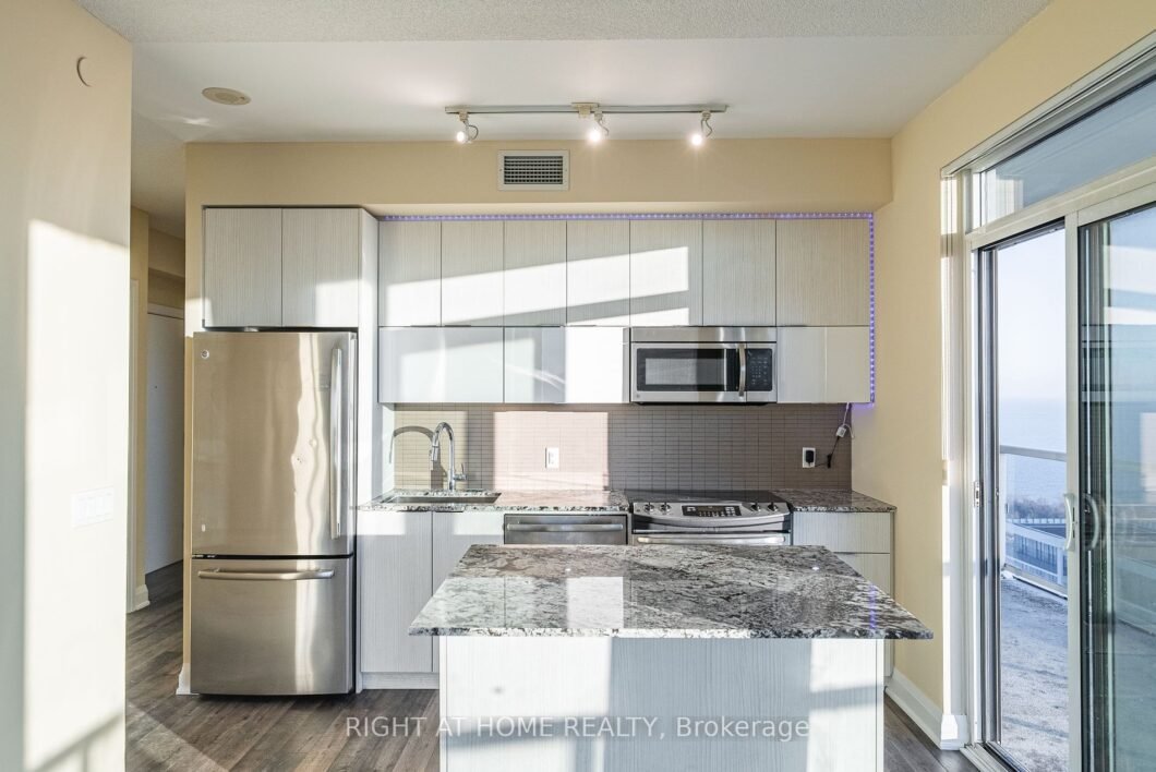 Beautiful 2-Bedroom Corner Unit At Lago At The Waterfront Featuring A Huge Wrap-Around Balcony With Breathtaking City & Lake Views. Freshly painted. LOTS of natural light. Modern Finishes, Laminate Floors Throughout, Kitchen Island And Stainless Steel Appliances. Spectacular Building Amenities Like Indoor Pool, Gym, Party Room, 24 Hour Concierge And Much More! Steps To The Lake, Parks, Hiking/Cycling Trails, Transit And Major Highways.