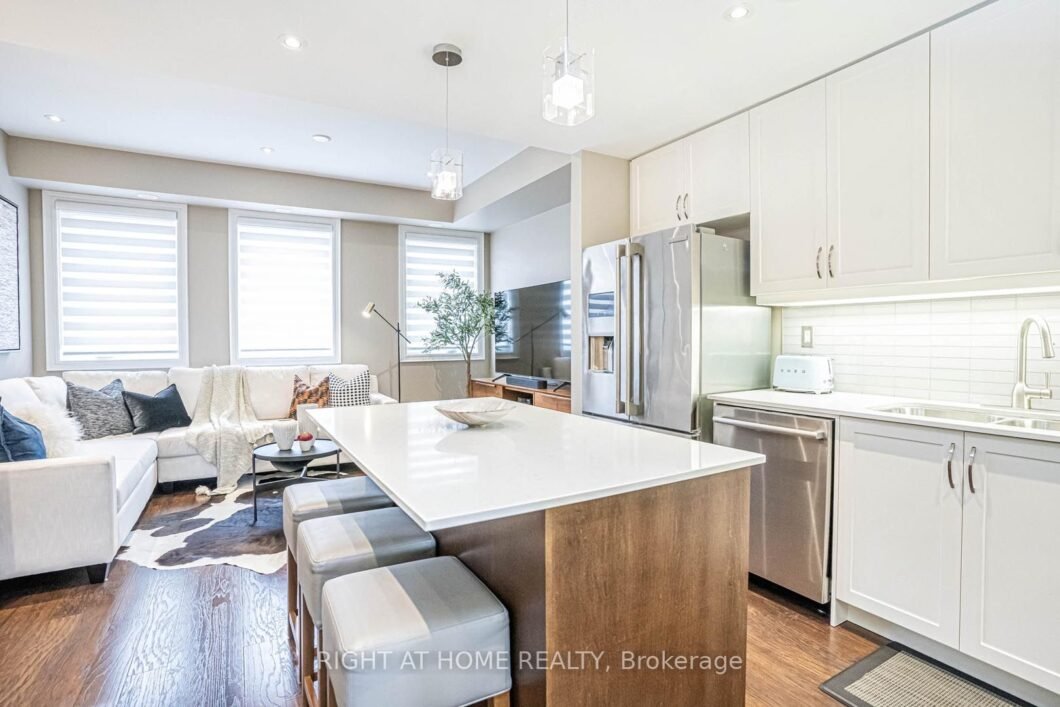 Welcome to 67-60 Winston Park Blvd a beautiful and bright south facing townhouse. Tucked away on the quiet and secluded Winston Park Blvd, this property feels more like a house than a city townhouse. This unit offers the largest layout in the complex, 1223 sq ft (only one other unit offers this layout). The main level of this home is functionally laid out with the open-concept living room/kitchen on one side, and the den, offering a perfect dining area, on the other side of the home. The powder room tucked conveniently in between. Kitchen cabinet and appliances, were tastefully upgraded from the builder grade, and includes an island with a breakfast bar. The second level of the home offers two generously sized bedrooms: the master with a 3-piece ensuite bathroom; and the second bedroom contains a 4-piece ensuite bathroom plus an oversized closet. The cherry on top is your third level retreat – private rooftop terrace with a view of the Toronto city skyline, CN tower, and treetops this is the perfect place to entertain or unwind on a warm summers day. Other notable features: upgraded hardwood flooring throughout, pot-lights, and zebra roller blinds, nest thermostat, nest doorbell, gas BBQ hook up on rooftop. Conveniently located minutes to highways (401, 400, Allen), TTC, Subway, Yorkdale mall, Shops, Costco, Home Depot, cafes, restaurants, gyms, Humber River Hospital, tennis courts & two splash pads nearby. **Please view Virtual Tour for additional photos and interactive floor plan.**