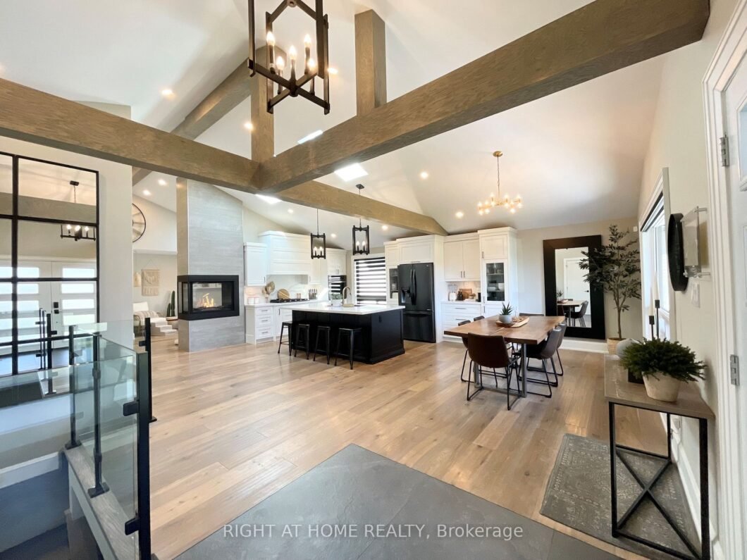 Welcome to your dream home! This stunning custom-designed bungalow boasts over 4,000 sq ft of exquisite living space, including five spacious bedrooms and four stunning bathrooms. Nestled on a deep pie-shaped lot backing onto a serene ravine, this home ensures complete privacy. The open-concept layout is perfect for modern living, featuring lofted ceilings, exposed beams, and 4 skylights, offering abundant of natural light. The large custom dream kitchen is a chef’s delight with high-end SS appliances, microwave drawer, Custom Cabinetry, and a large island perfect for entertaining. The living area is enhanced by a stunning floor-to-ceiling three-sided gas fireplace, adding warmth and a focal point for the open concept space. Luxury amenities abound, including heated bathroom floors, home gym, and a games room. This house has it all. The walkout basement features a beautiful bar and entertainment space, ideal for hosting gatherings and creating memories. Outdoor living is elevated with a new composite deck including built-in Napoleon gas grills and a gas line for a gas firepit, perfect for cozy evenings and summer BBQs. The expansive driveway can accommodate up to 8 cars, making it ideal for guests and large families. The basement includes a rough-in behind the wall for a potential kitchen, offering a fantastic rental or in-law suite opportunity. Modern upgrades include a newer furnace, AC, and a brand-new owned HWT (2024). All WC, ELFs, GDO, & SS Appliances are included. In-ground 5-zone sprinkler system ensures a lush green lawn with minimal effort. The property also features Alu-Rex Microfiltration eavestrough guards, providing efficient & maintenance-free gutter protection. Recognized for its exceptional design and craftsmanship, this showstopper won the DRHBA 2019 Award of Excellence. Located in a mature, safe, and family friendly neighbourhood, this beautiful property is a rare find. Don’t miss the opportunity to make this stunning bungalow your forever home!